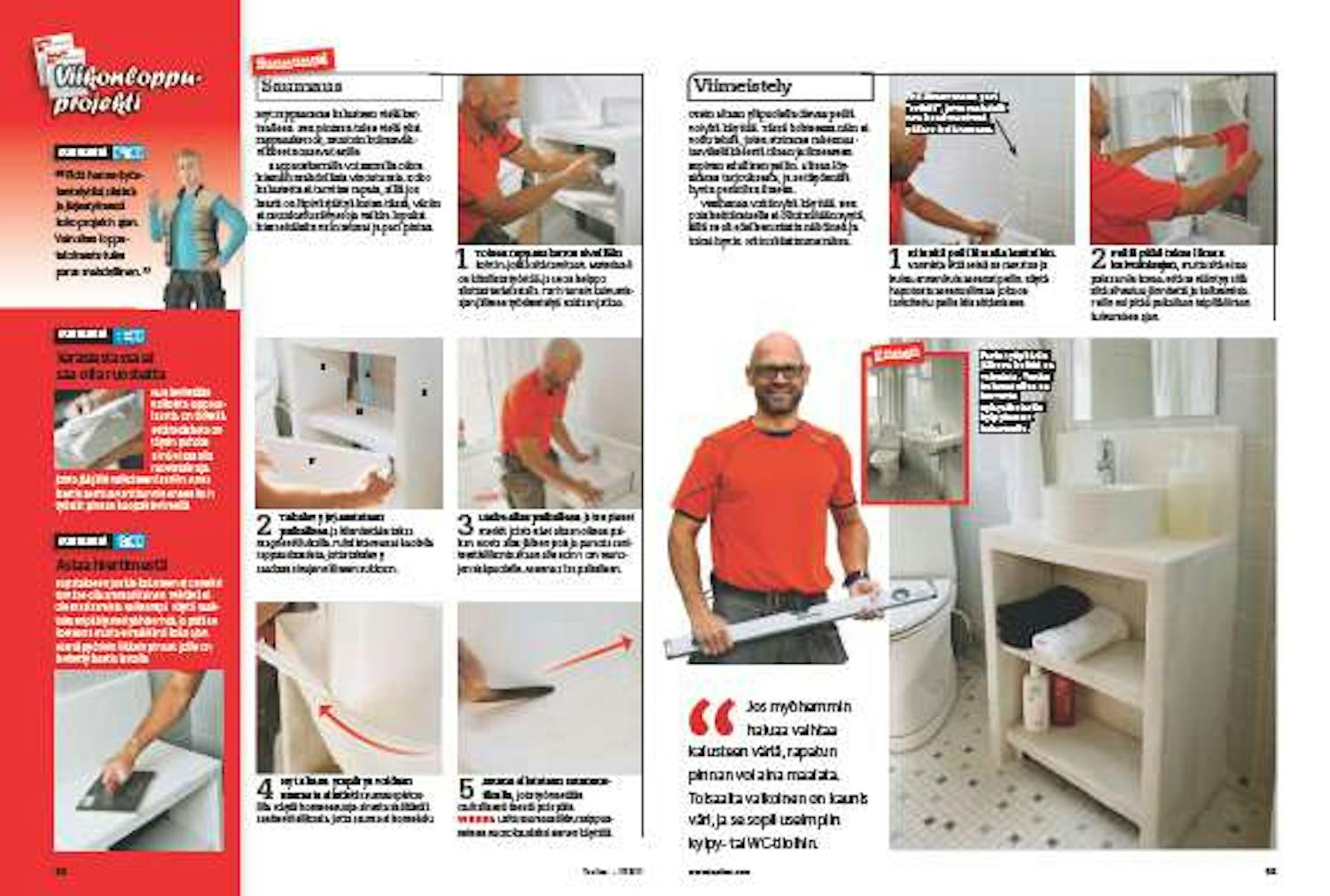 Ensimmäiseksi on tarkistettava, että vesikalusteissa on sulkuhana, jotta tulo-vesi voidaan sulkea. Myös lattia on syytä peittää, jotta siihen ei vahingossa tule naarmuja. Kylpyhuone ei yleensä ole kodin suurin huone, joten leikkureita ja sahapukkeja ym. kannattaa käyttää autotallissa, eteisessä tai siellä, missä on tilaa sahata. Valmistaudu myös siihen, että työstä syntyy pölyä.