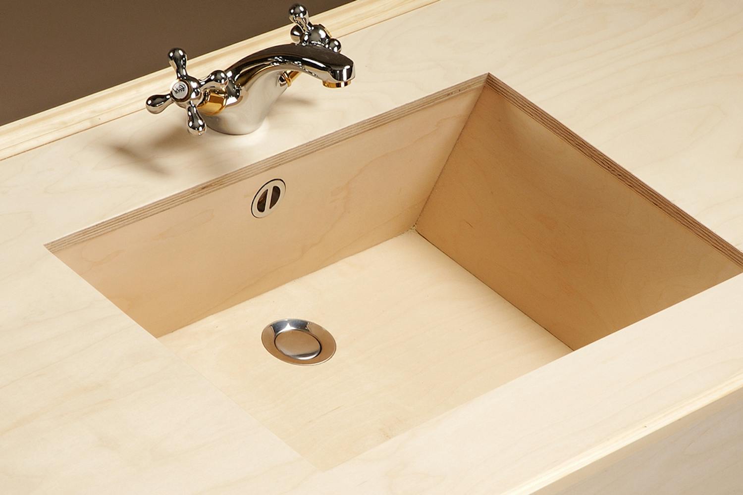 Kyllä pesualtaan voi rakentaa puusta – sellaisia on tehtykin (katso kuva). Liitokset on tehtävä tarkasti, jotta niistä tulee tiiviit. Lisäksi pesualtaan viemäriliitännät on upotettava tarkasti. Muilta osin työssä ei ole mitään erityistä.