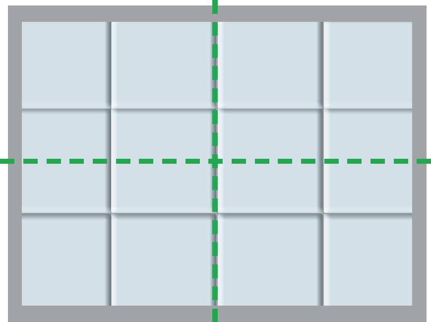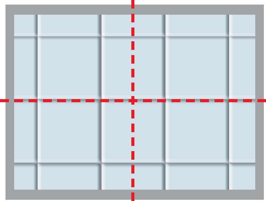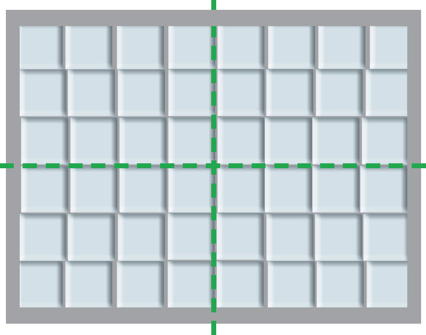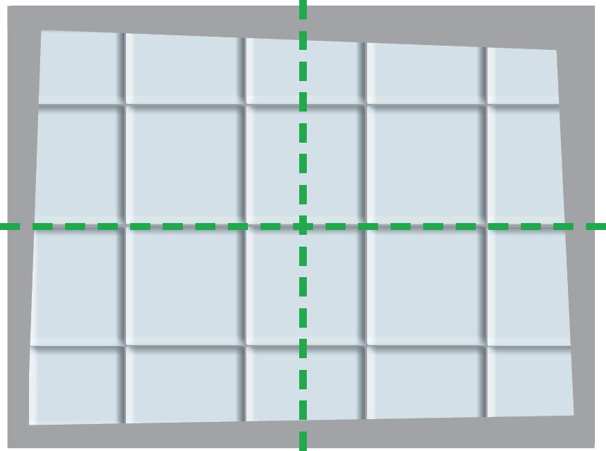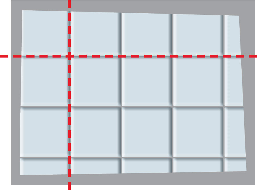 Toinen keskeltä aloittamisen etu on se, että tehty pinta ei pääty kapeaan laattakaistaleeseen tai lautaan loppu päässä. Kapeat päätykaistaleet lisäävät vinouden tunnetta ja rumentavat useimmiten lopputulosta.