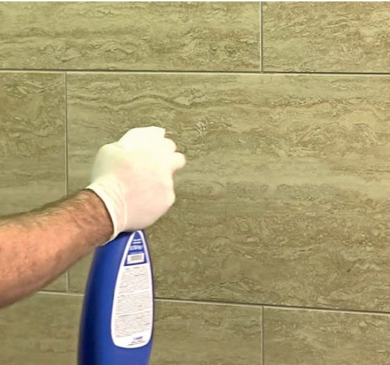 Pese laatat ensimmäisen kerran hyvin lämpimällä vedellä ja kovalla sienellä. Ota toinen astia, täytä se lämpimällä vedellä ja huuhtele sientä välillä. Pese pinta toiseen kertaan pehmeällä sienellä ja lämpimällä vedellä, jossa on spriitä. Huuhtele sientä välillä toisessa paljussa. Hävitä pesuvesi kemikaalijätteenä.