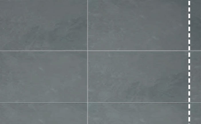 Asenna päätyseinän keskelle kokonainen laatta. Sen jälkeen voit leikata molemmille puolille samankokoiset palaset.