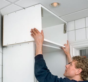 Asenna kaappimoduuli paikoilleen. Käytä aikaa, että saat kaapiston varmasti suoraan. Ajankäyttö palkitaan myöhemmin, kun asennat rumpukuivaajan paikoilleen.