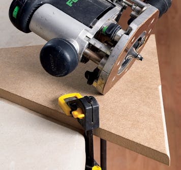 Pyöristä hyllyjen etureunat. Käytä yläjyrsintä ja pyöristysterää. Reunat voi hioa myös hiomapaperilla, jos yläjyrsintä ei ole käytettävissä.