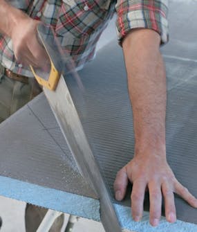 Sahaa levyt. Ota mitta seinästä ja siivekkeen loppupisteestä, jotta levyn alareunan voi muotoilla lattian mukaan siten, että kaato otetaan huomioon.