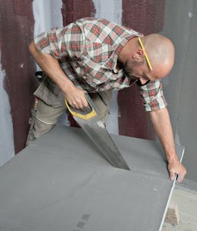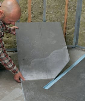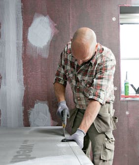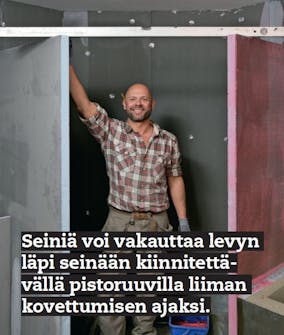 Nyt kevyet rakennuslevyt pääsevät todella oikeuk-siinsa. Suihkutilan seinäk-keitä pystytettäessä on suuri etu, että levyt eivät paina juuri kahvipakettia enempää.