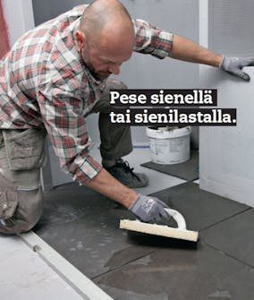 Pese laattalaasti pois, kun olet asentanut laatat. Pese varovasti, mutta perus-teelli sesti, jotta saat laatat puhtaiksi, mutta et samalla muuta saumojen leveyttä.