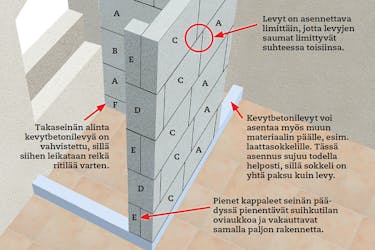Sokkeliin tarkoitetut levyt on asennettava huolellisesti, jotta ne asettuvat tarkasti oikeille paikoilleen ja suoraan. Kun tämän alustavan vaiheen työt tekee huolella, loppu sujuu leikiten.
