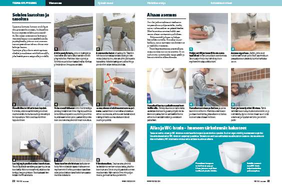 Kun kaikki laatat ovat paikoillaan ja ne on saumattu ja kun myös allas on paikoillaan ja liitetty, jäljellä on enää WC-istuimen kiinnittäminen paikalleen.