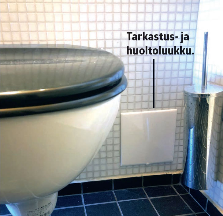 Tarkastus- ja huoltoluukun kautta pääset käsiksi sisäänrakennetun vesisäiliön sisäosan teknisiin asennuksiin.