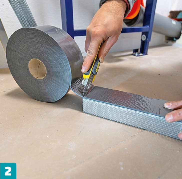 Liimaa tiivistysnauha profiileihin, jotka tulevat lattiaa ja seiniä vasten. Nauha estää tärinän ja ääniaaltojen siirtymisen metallirakenteesta muualle taloon ja päinvastoin.