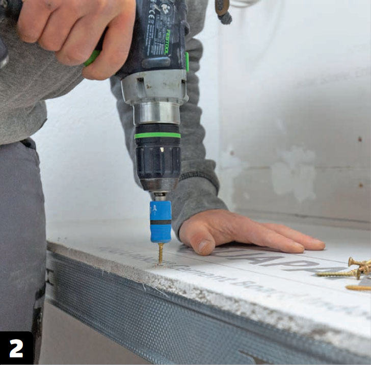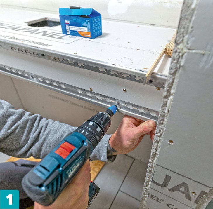 Ruuvaa kulmalistat kiinni. Listat ruuvataan tason molempiin reunoihin ja seinien ulkokulmiin ennen laattojen asennusta. Älä kiristä listoja liikaa, jotta ne eivät väänny.