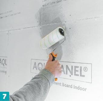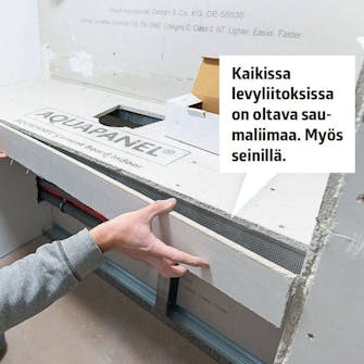 - 12,5 mm kuituvahvisteisia sementtilevyjä (tässä Aquapanel Indoor, 90 x 125 cm)