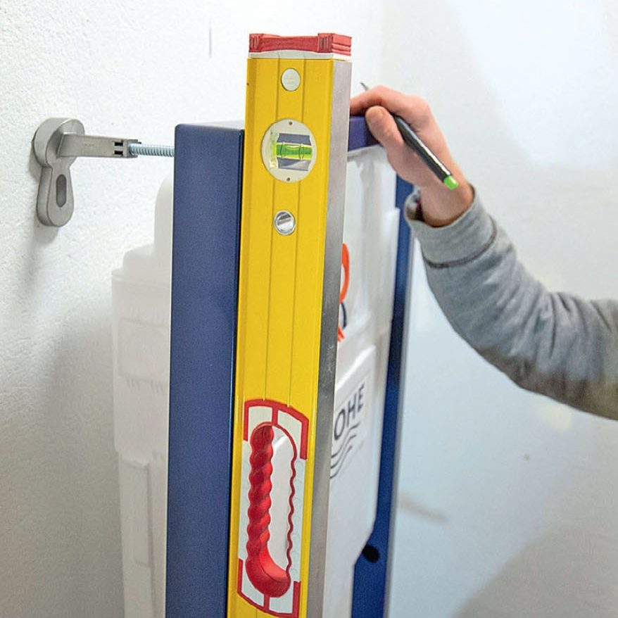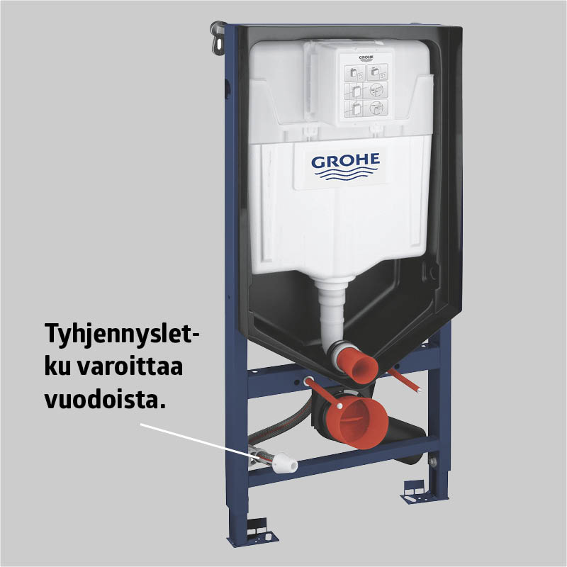 Kehys säädetään vaaka ja pystysuoraan kaikkiin suuntiin. Se on tärkeää, jottei WCistuin ala vuotaa.