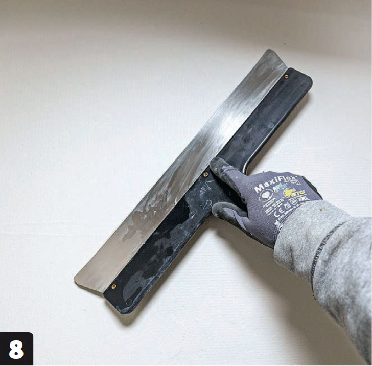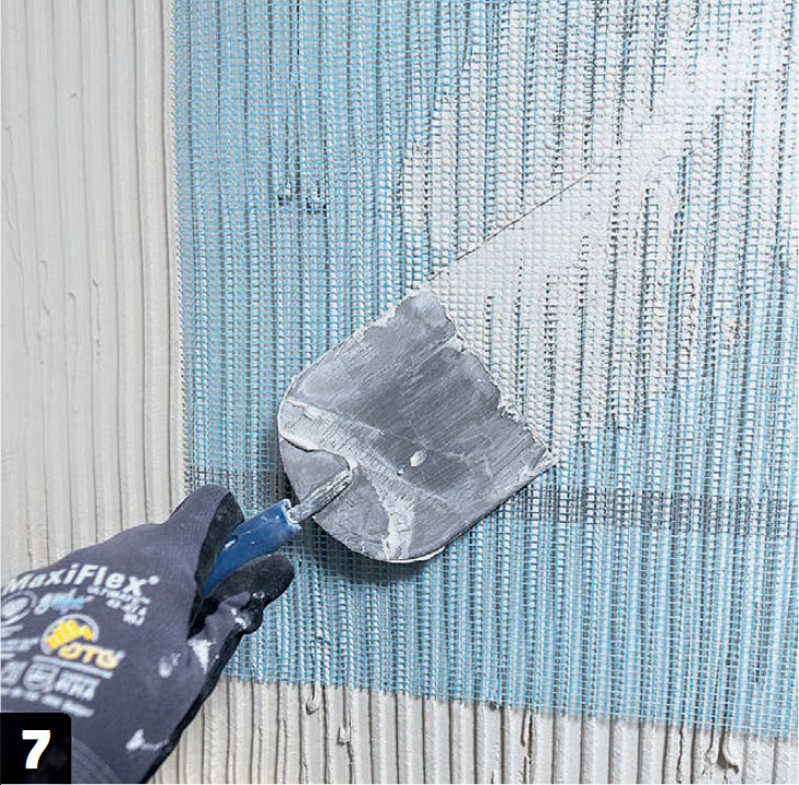 Tässä tasoite vahvistetaan lasikuituverkolla. Näin vältetään laastin halkeaminen myöhemmin. Verkko painetaan tasoitteeseen ja tasoitetaan tavallisella hampaattomalla teräslastalla.