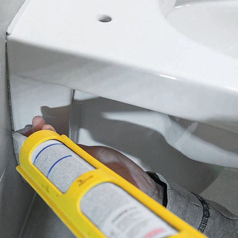 WC-istuimen ympärillä oleva sauma on joustavaa saniteettisilikonia. Se tiivistää ja varmistaa, ettei seinän ja WC-istuimen väliin keräänny likaa ja bakteereja.