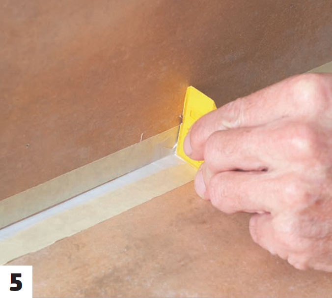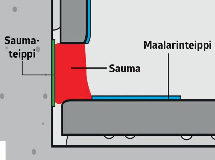 Aseta saumanauhaa pohjalle, kun olet suojannut sauman maalarinteipillä. Paina teippi tiukasti kiinni reunaan saumaa vasten.