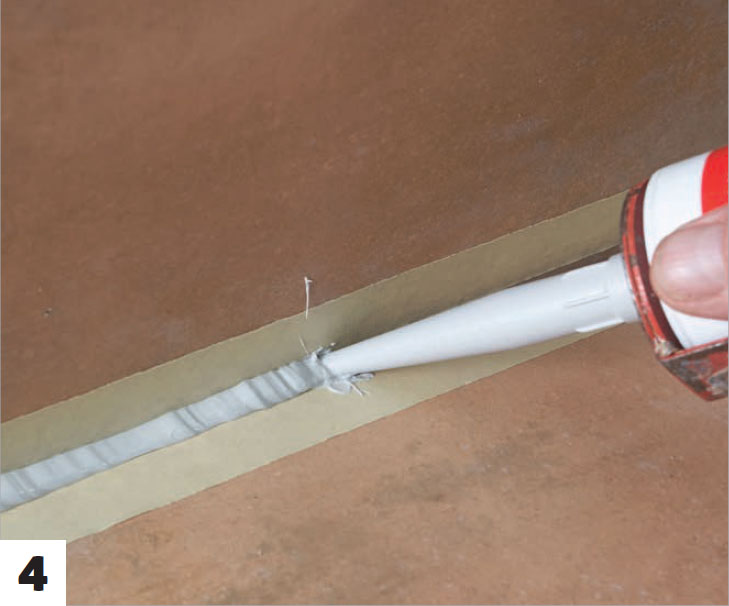 Levitä saumaliimaa levyn etureunaan. Tätä levyille tarkoitettua liimaa on levitettävä kaikkien levyliitosten väliin saumojen tiivistämiseksi.