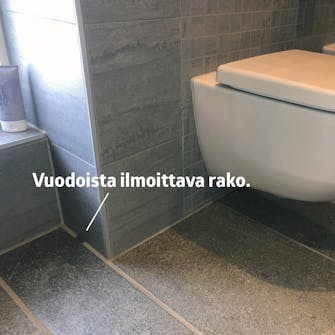 Rako lattian rajassa vesisäiliön kalustekotelossa varoittaa mahdollisista vuodoista johdattamalla veden raon kautta lattialle.