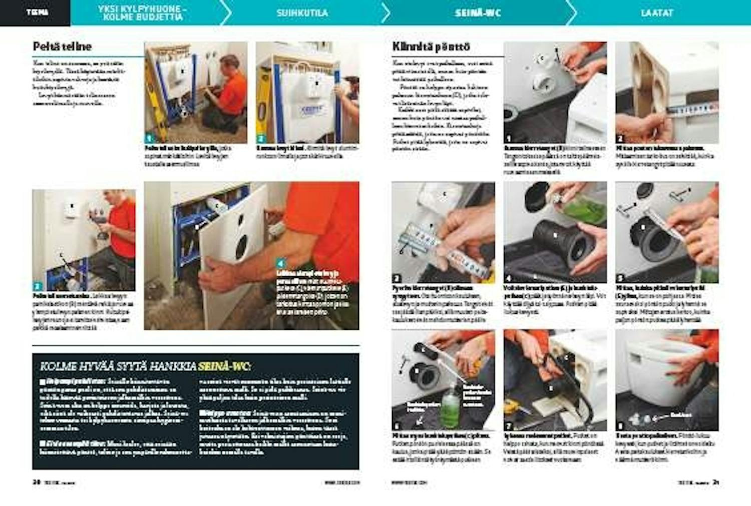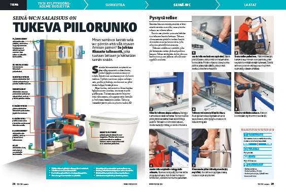 Seinään kiinnitettävää pönttöä ei kiin-nitetä seinään ruuveilla, vaan pöntön takana on tukeva teline.