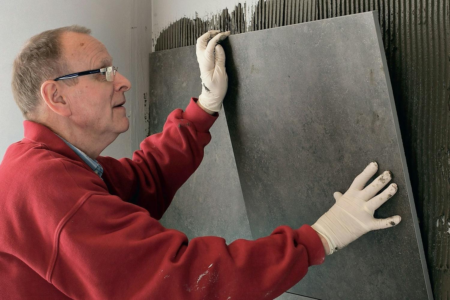 Tässä asennetaan keraamisia laattoja, mutta graniittilaatat asennetaan samalla tavalla. Niiden kanssa pitää kuitenkin käyttää pH-arvoltaan neutraalia laastia, joka ei syövytä luonnonkiveä.