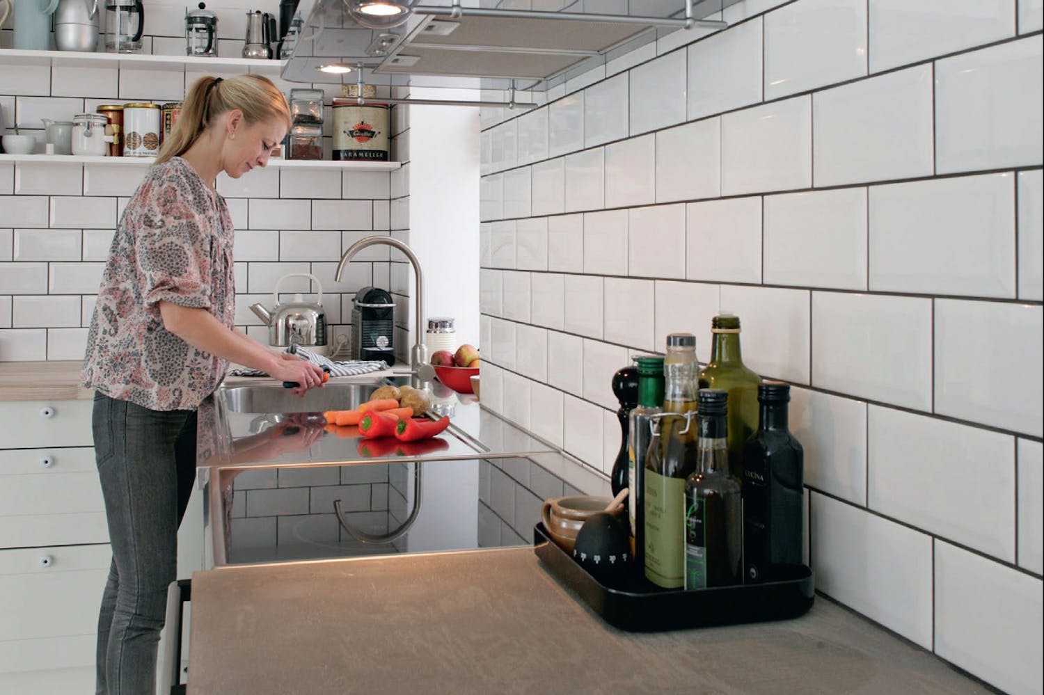 Muista tarkistaa säännöllisesti, että laatat ovat samalla tasolla toisiinsa verrattuna. Jos yksittäinen laatta on koholla, voit painaa sitä hieman alaspäin laastia vasten.