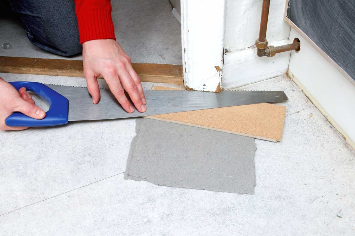 Jos uusi ponttilattia asennetaan vanhan päälle, ovien peitelistoja on usein hiukan lyhennettävä. Sahaa käsisahalla tai monitoimityökalulla ja aseta terän alle puu- tai levypala.