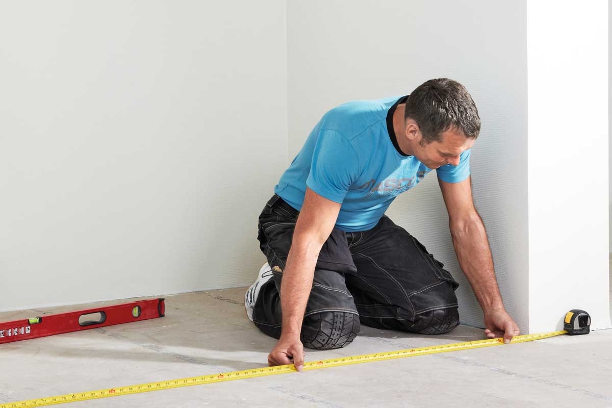 Mittaa lattia, jotta voit suunnitella lautojen asennuksen. Saumakohtia on limitettävä vähintään 25 cm rivistä riviin. Päätypalat eivät saa olla alle 10 cm:n levyisiä.
