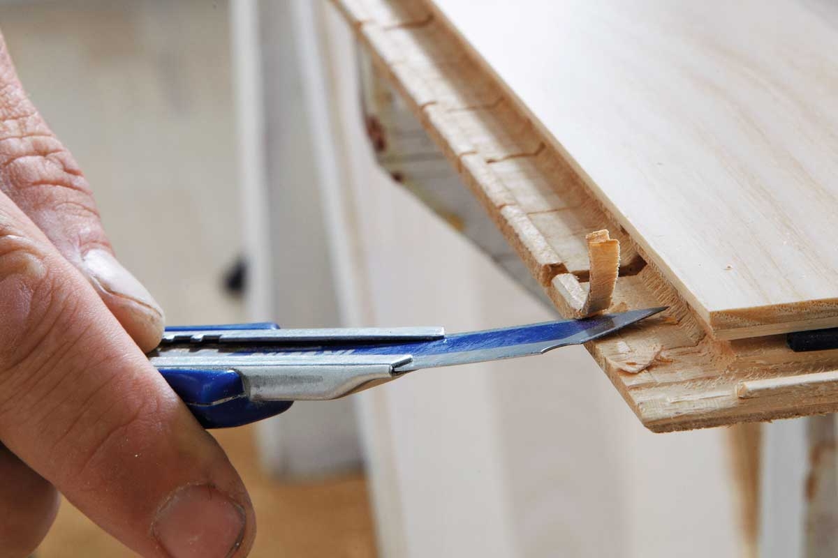 Joitakin lautoja voi olla vaikea napsauttaa yhteen - esimerkiksi viimeistä lautaa seinän vieressä. Tällöin voit poistaa alimman ponttiliitoksen ja liimata kaksi lautaa yhteen puuliimalla.