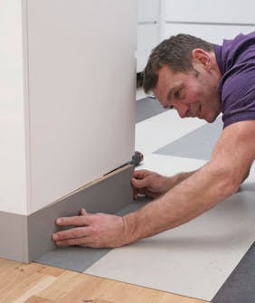 Jäljellä on enää viimeistely-töitä: sokkelin napsauttami-nen paikalleen ja listojen asentaminen. Nämä ovat niitä yksityiskohtia, jotka jäävät monelta tekemättä. Se on harmillista, sillä vasta viimeistely täydentää uuden lattian tuottaman ilon.