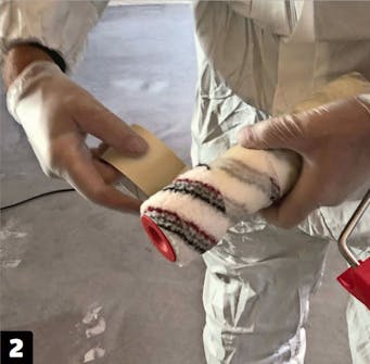 Poista nukka telasta maalarinteipillä. Kaikissa teloissa on irtokarvoja, jotka voivat tarttua kiinni pohjusteeseen ja kovettua inhottaviksi piikeiksi lattian pinnalle.