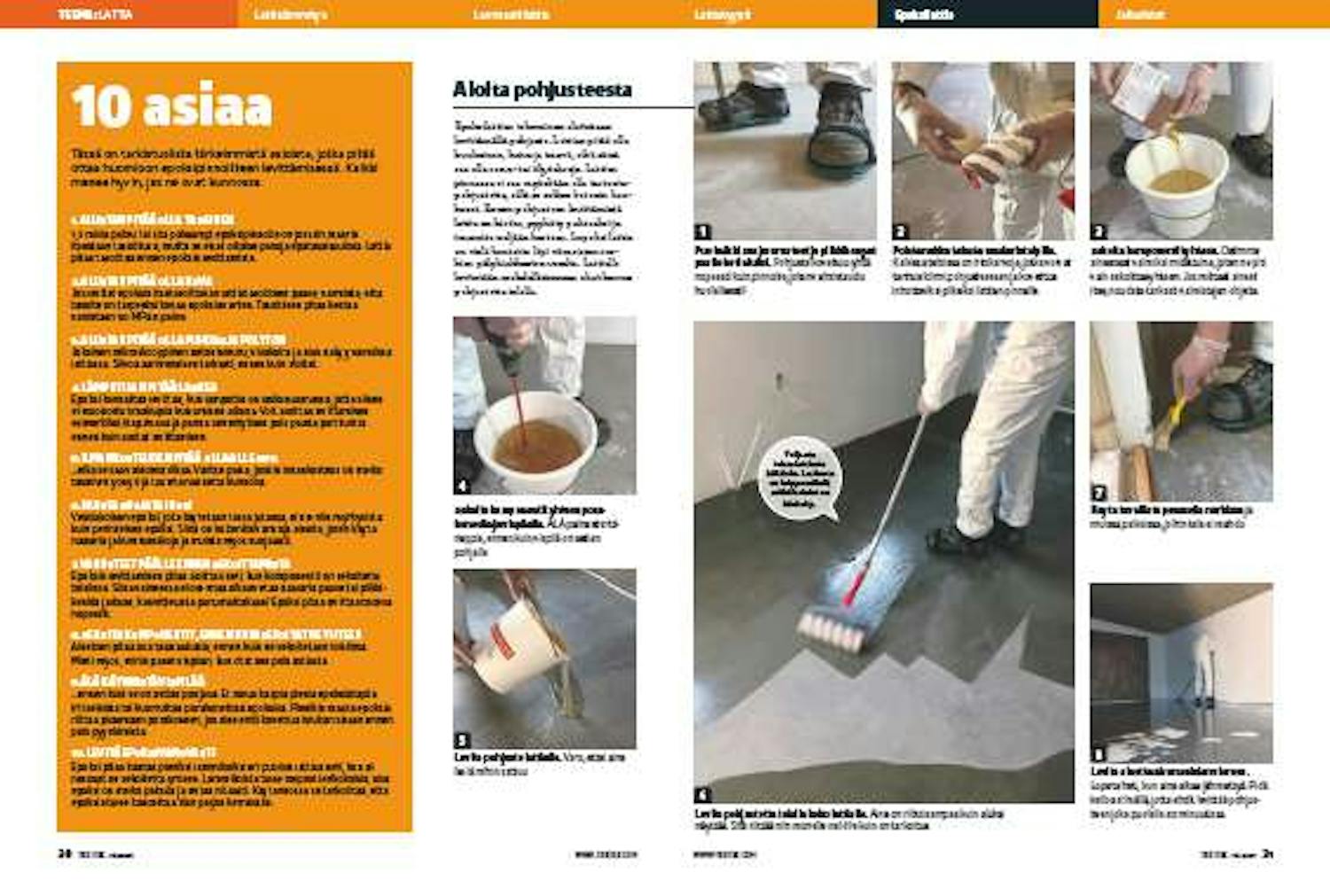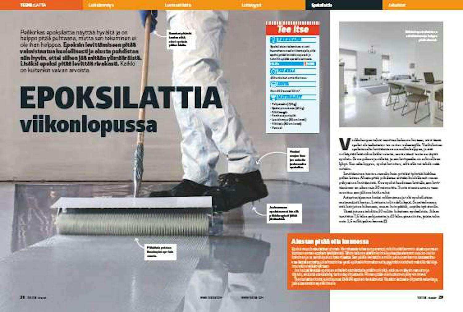Epoksilattian tekeminen ei sovi huonohermoiselle rakentajalle, sillä epoksi pitää levittää nopeasti ja tekniikka pitää opetella lennosta.