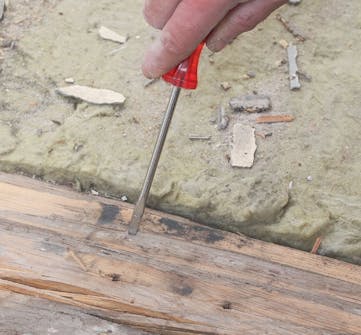 Tarkista, ovatko lattiapalkit kunnossa. Pistä palkkeihin ruuvitaltalla tai puukolla ja tarkista pehmenneet kohdat. Tutki huolellisesti varsinkin päätyjä. Huonokuntoiset palkit on vaihdettava joko kokonaan tai osittain.