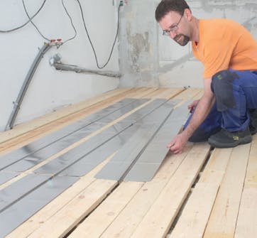 Molemmat tuotteet on helppo asentaa, jos muottilaudat on asennettu oikein. Metallilevyt asetetaan pienin raoin ja lämpökaapeleille tarkoitetut urat painetaan laudoituksen rakoihin.