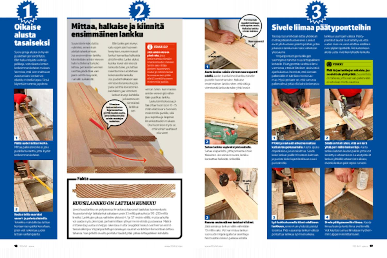 Lattiasta tulee upea, jos hallitset perustekniikat. Joidenkin lankkujen asentaminen vaatii voimaa.