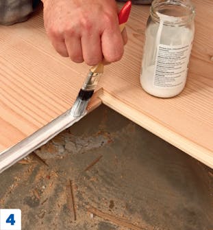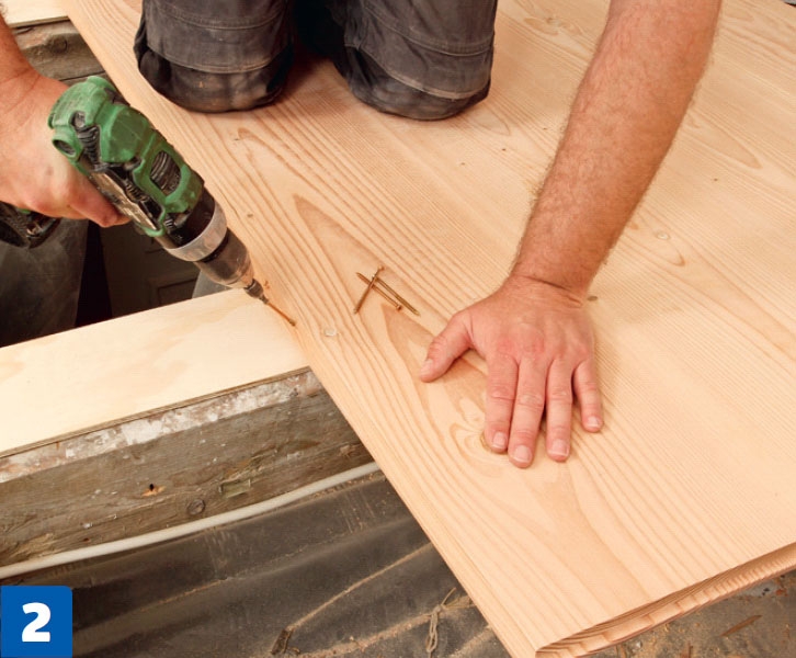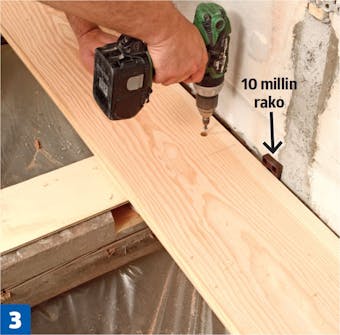 Kiinnitä lankut lattiaan ruuveilla ja tulpilla