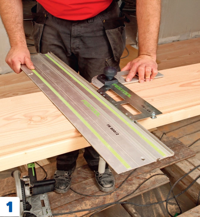 Pitkät ja raskaat lankut kannattaa katkaista upotussahalla. Käytä apuna ohjainkiskoa ja suorakulmaa. Säädä kisko lankun päälle 90 asteen kulmaan ja purista kisko lujasti lankkuun ruuvipuristimella.