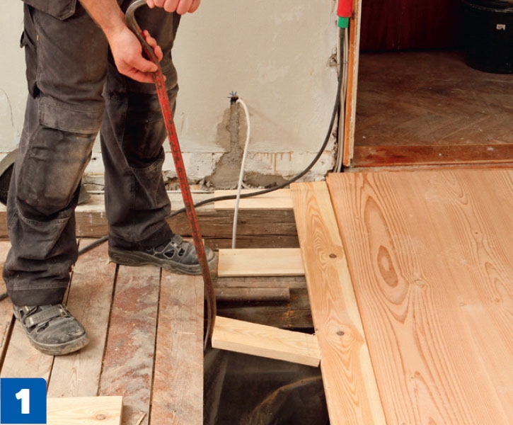 Päätä uuden lattian korko. Mittaa palkkien korkeus joka puolella huonetta, jotta löydät korkeimman kohdan.
