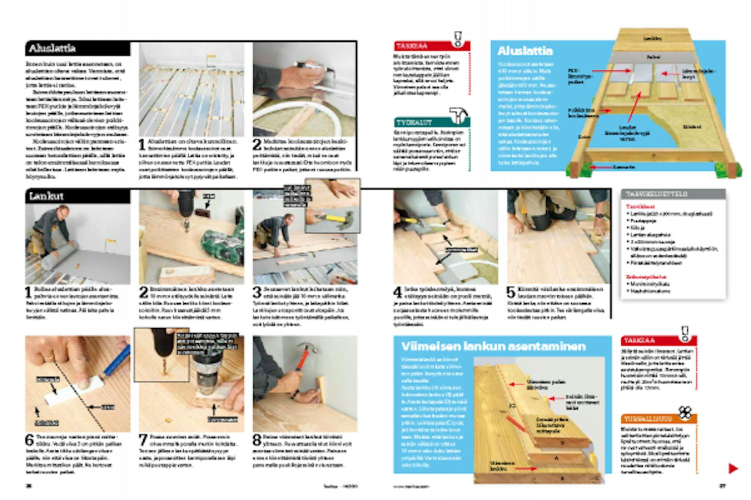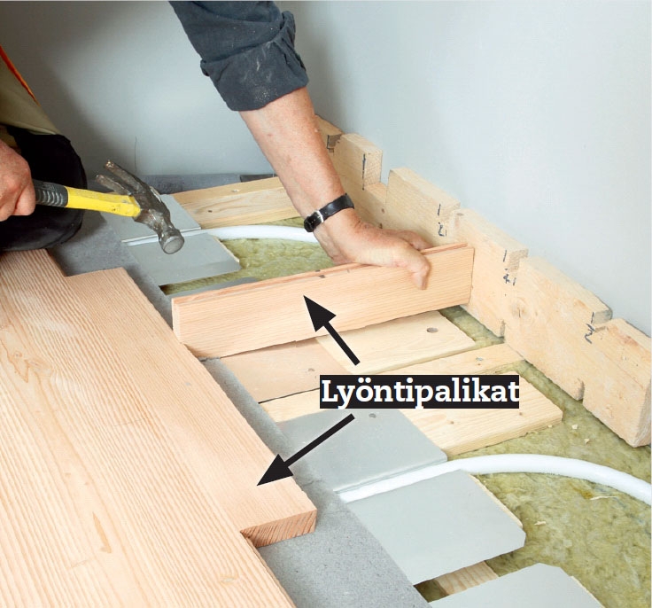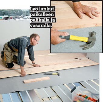 Ennen kuin uusi lattia asennetaan, on aluslattian oltava vakaa. Varmista, että aluslattian kannattimet ovat tukevat, jotta lattia ei natise.