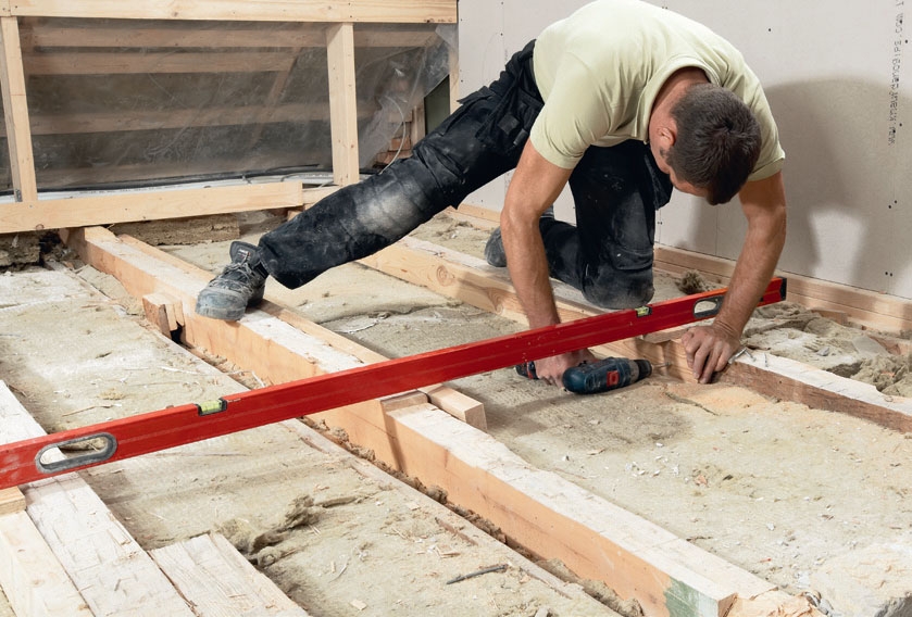 Koolaa lankut suoriksi ja asenna askeläänieriste