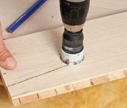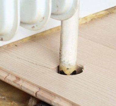 Laudat saa seinustalla sovitettua putkiin poraamalla lautaan reiän ja sahaamalla siitä kiilapala pois kuten oheisissa kuvissa. Jos lautojen pitkä sivu on seinää vasten, put-kista selviää säätämällä uloimman laudan pituutta niin, että kaksi lautaa yhdistyy putkikohdassa.