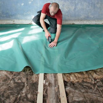 Vanhan talon eristyksiin ja tiiviyteen ei kannata puuttua liian rajusti, sillä se saattaa aiheuttaa ongelmia. Me kysyimme neuvoja alan ammattilai selta, ja hän suositteli lattian eristämistä 2 x 95 mm:n mineraalivillalla. Jotta huonelämpö pysyisi huoneessa, rakenne tiivistetään höyrynsululla ja ryömintätilan ilmanvaihtoaukkoja lisätään ilmanvaihdon kohentamiseksi.