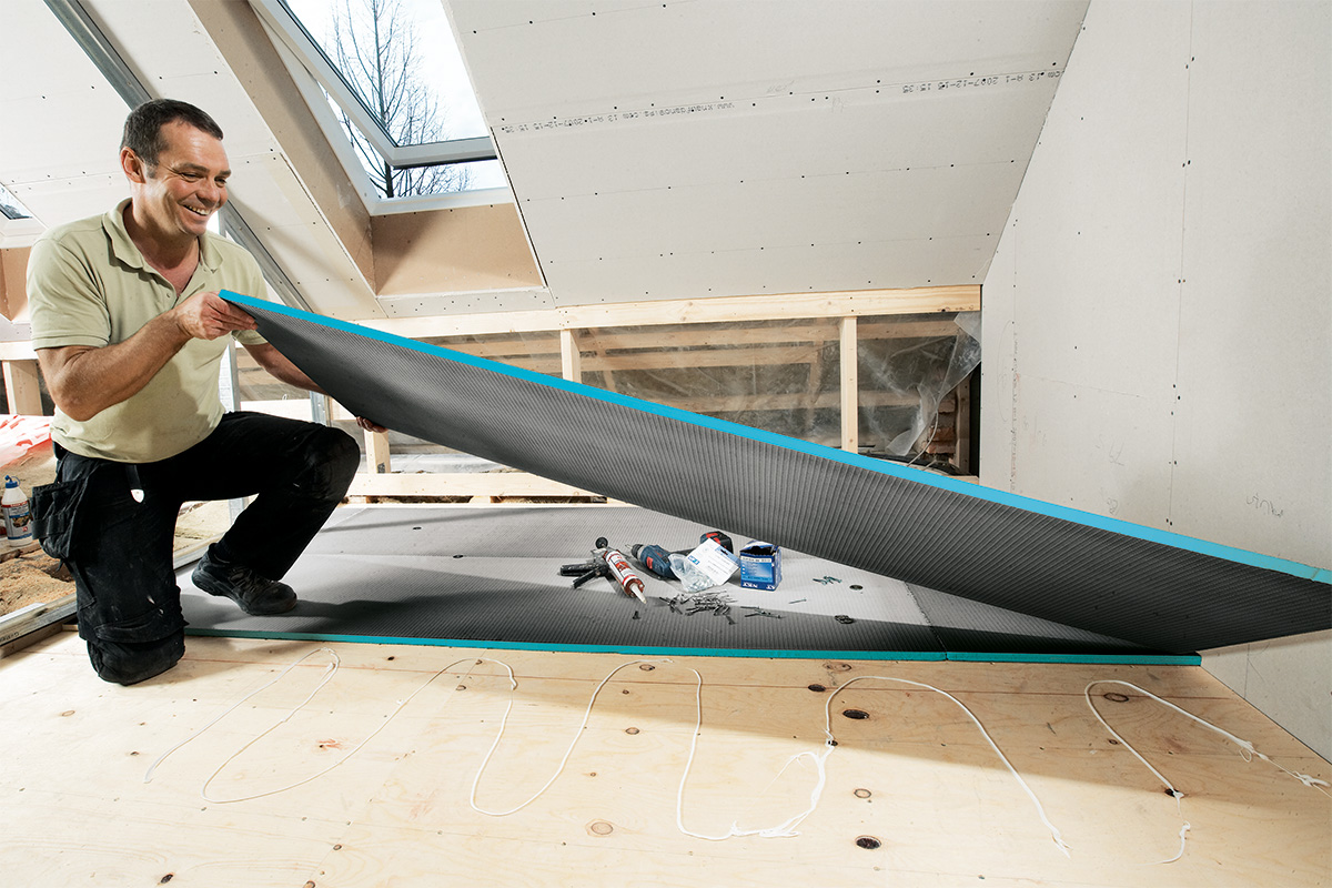 Lattialevyissä on urat ja pontit, ja nii-hin sivellään myös liimaa, jotta ne levyt lukkiutuvat toisiinsa. Yhdessä ruuvien kanssa levyt pysyvät varmasti tiiviisti alustassa kiinni.