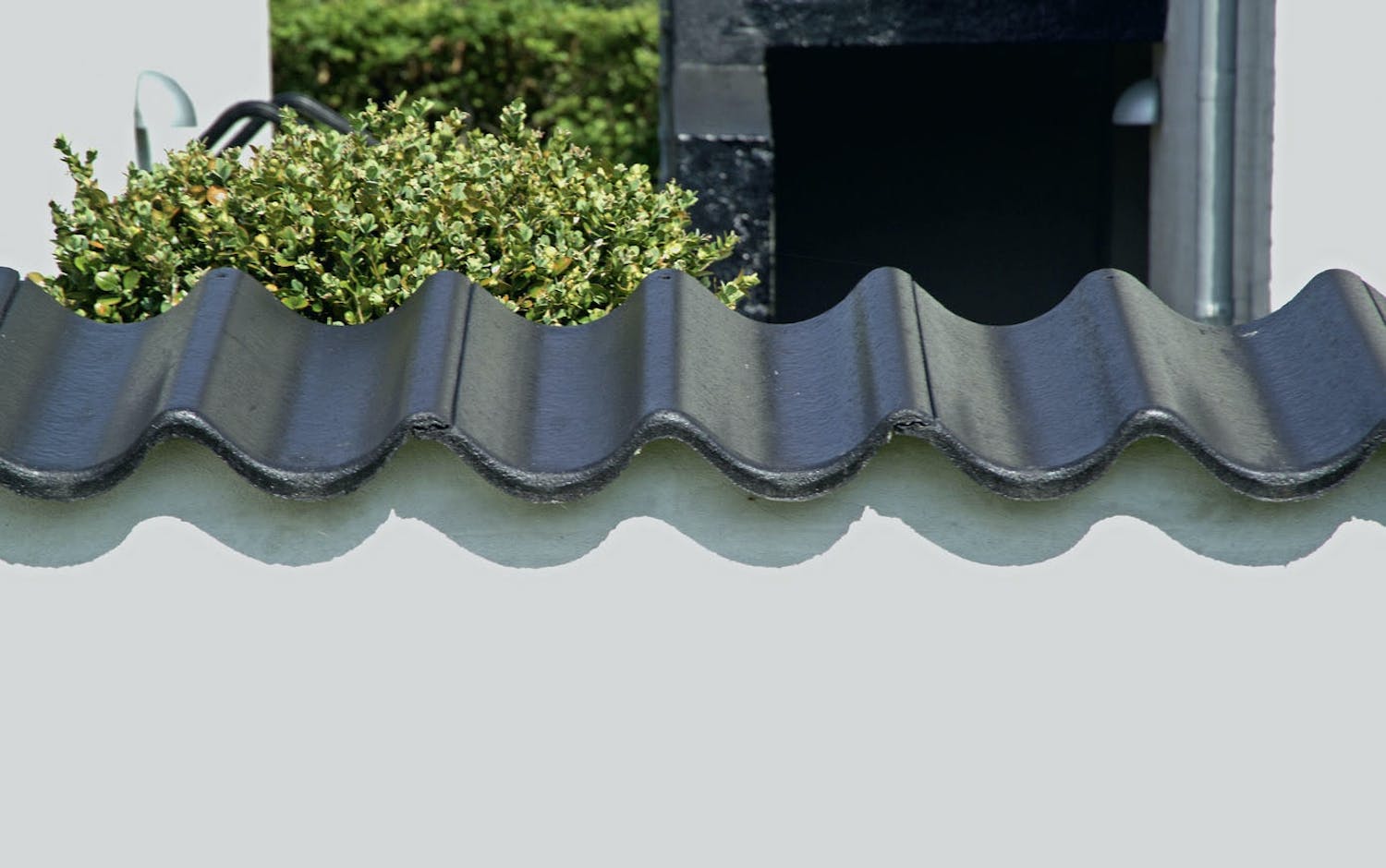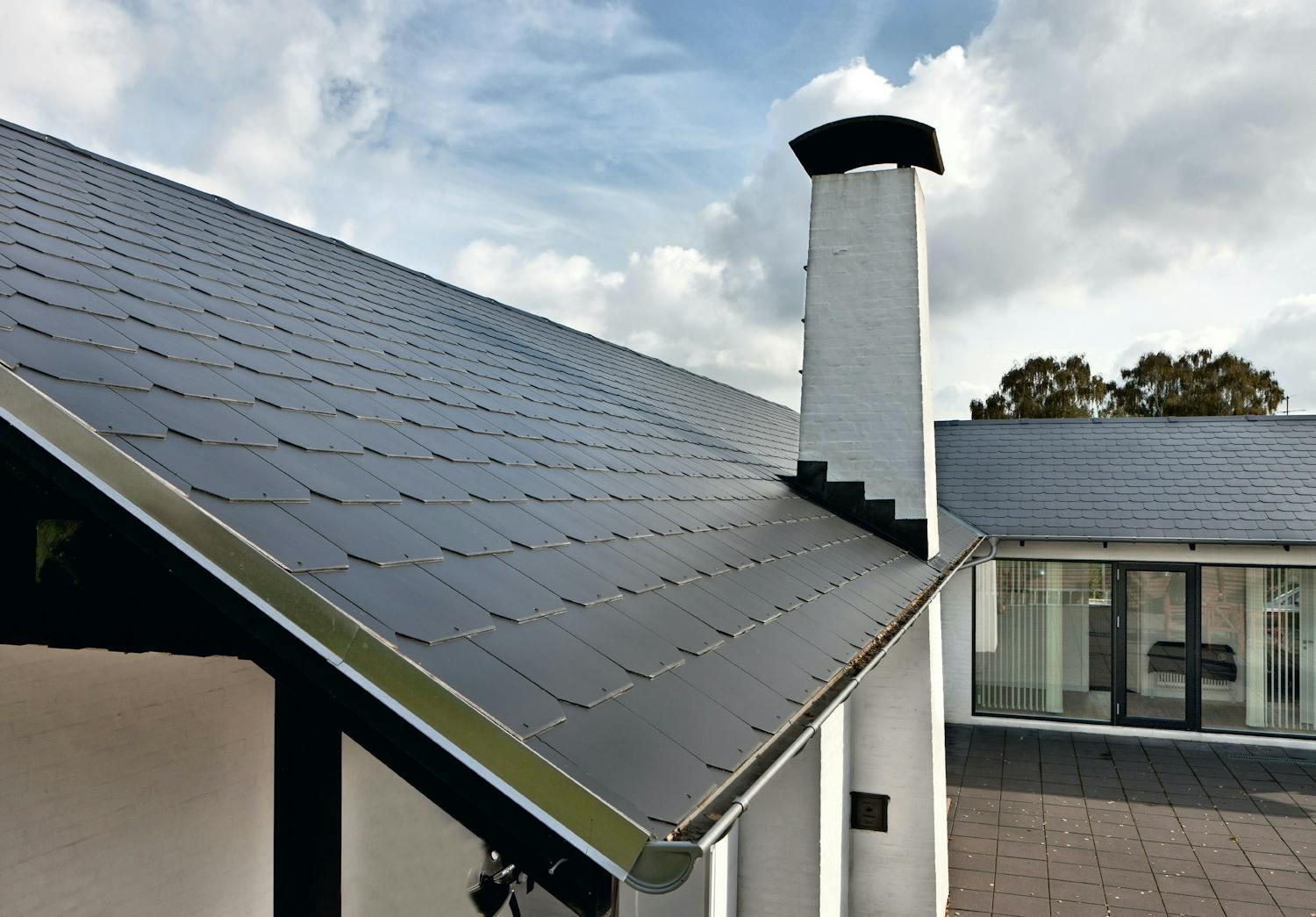 On lähes mahdotonta huomata, että katto on tehty liuskekiveä jäljittelevistä levyistä, jotka koostuvat selluloosapohjaisista kuiduista ja mineraaleista, nk. kuitusementistä Materiaa-li on tuttu poimulevyistä, joita käytetään paljon vapaa-ajan asuntojen, tallien ja verstaiden katemateriaalina.