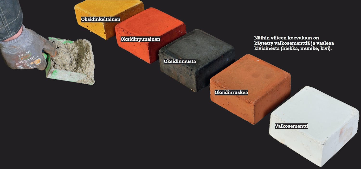 Punnitse väri jau heen määrä. Me pyrimme sekoituk seen, jossa värijau-hetta on 7 % sementin ja kiviaineksen painosta (ennen veden lisäämistä).