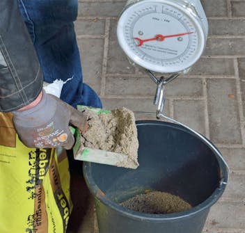 Punnitse ensin sementti- ja kiviaines määrät erikseen. Pienempiin annoksiin voi käyttää vaakaa, isompia määriä varten ainesten suhteet voi laskea säkistä.