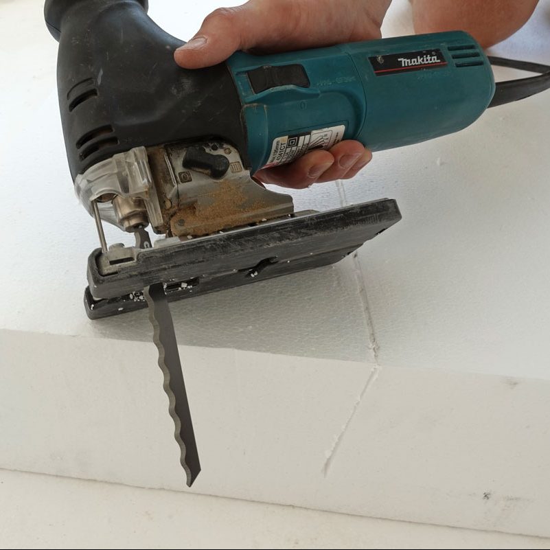 Jos sinun tarvitsee sahata vain vähän polystyreeniä, pääset pitkälle erikoisterällä varustetulla pistosahalla, joka on tarkoitettu erityisesti EPS-levyille ja muille pehmeille materiaaleille.