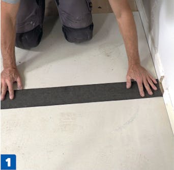 Levitä kaistale huopaa seinän kohdalle. Se estää kosteutta nousemasta lattiasta seinään ja suojaa lattiaa laattaliimalta.