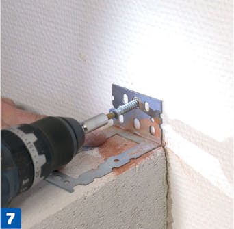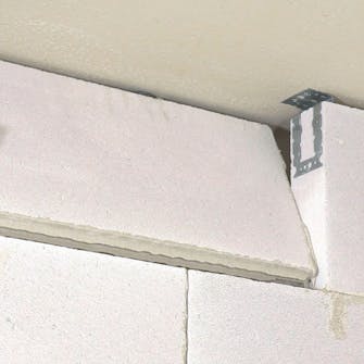 Asenna joustava kiinnike kattoa vasten. Kiinnike pitää seinän pystyssä mutta antaa katon ja seinän liikkua suhteessa toisiinsa. Kiinnike asennetaan laattojen välisiin saumoihin ja ruuvataan kiinni vain kattoon.