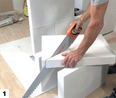 Sahaa viimeinen levy. Se on helpointa tehdä kevytbetonisahalla. Voit käyttää myös vanhaa käsisahaa, jolla ei ole tarkoitus sahata enää mitään muuta.