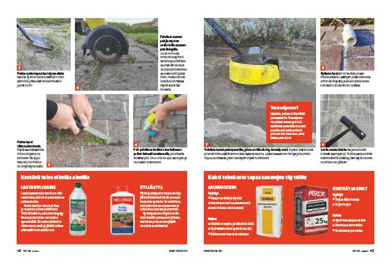 Kuja on saanut kasvaa rauhassa umpeen, joten laatat pitää puhdistaa perusteellisesti. Voit puhdistaa saumat joko sähköisellä saumanpuhdistajalla tai kontata maassa pitempään tavallisen saumakaapimen kanssa.